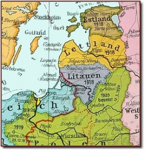 Am 24. Februar 1918 proklamieren die Esten die Unabhängigkeit Estlands, einen Tag vor dem Einmarsch der deutschen Truppen. Im Frieden von Brest-Litovsk verzichtet Sowjetrussland unter Lenin auf die baltischen Länder. Am 23. März 1918 bestätigt Kaiser Wilhelm II. offiziell die litauische Unabhängigkeit. Mit der Abdankung Kaiser Wilhelms II. werden die unrealistischen Hoffnungen deutscher Balten in Estland und Lettland auf ein „Vereinigtes Baltisches Herzogtum“ unter deutscher Reichshoheit endgültig zunichte gemacht. Am 18. November 1918 rufen die Letten die Republik Lettland aus. Nach verlorenem Krieg ziehen die deutschen Truppen aus den baltischen Staaten ab.