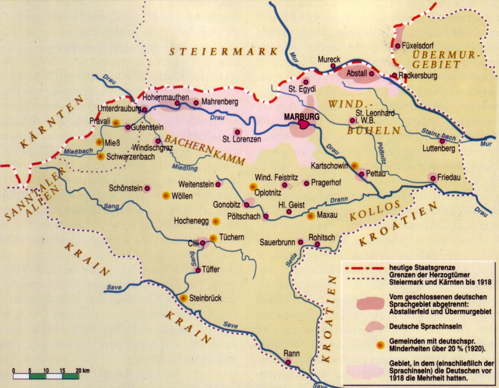 Im Ersten Weltkrieg kämpften deutsche und slowenische Untersteirer vier Jahre lang gemeinsam und tapfer bis zum Zusammenbruch der österreichisch-ungarischen Monarchie. Nach diesem Zusammenbruch im Jahre 1918 sammelte der k.u.k. Oberstleutnant Majster slowenische Soldaten und besetzte mit ihnen die deutsche Stadt Marburg, das Drautal und auch Gebiete nördlich der heutigen Staatsgrenze von der Soboth bis Radkersburg.