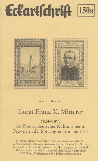 Walter Marzari: Kurat Franz Xaver Mitterer, ein Pionier deutscher Kulturarbeit in Südtirol. Eckartschrift 150a, 32 Seiten