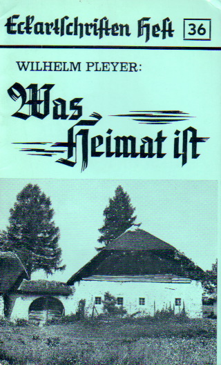 Wilhelm Pleyer: Was Heimat ist. Eckartschrift 36, 22 Seiten.