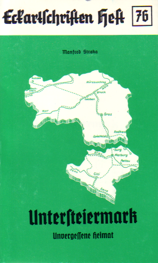 Manfred Straka: Untersteiermark – unvergessene Heimat. Eckartschrift 76, 96 Seiten, 1 Karte.